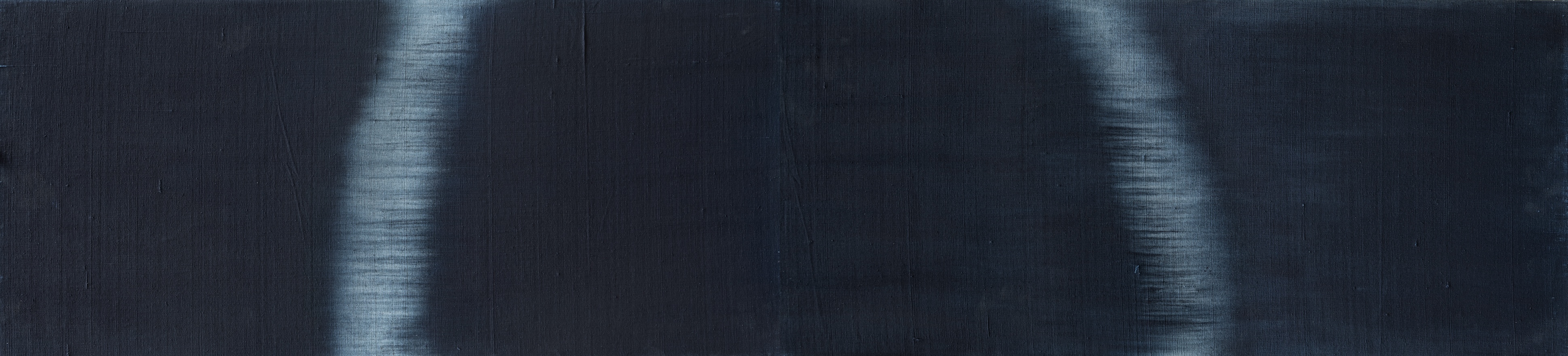 A Time of Stability (Margazhi), Natural Indigo on unbleached Khadi textile, 42 x 91.5 cm, 2025