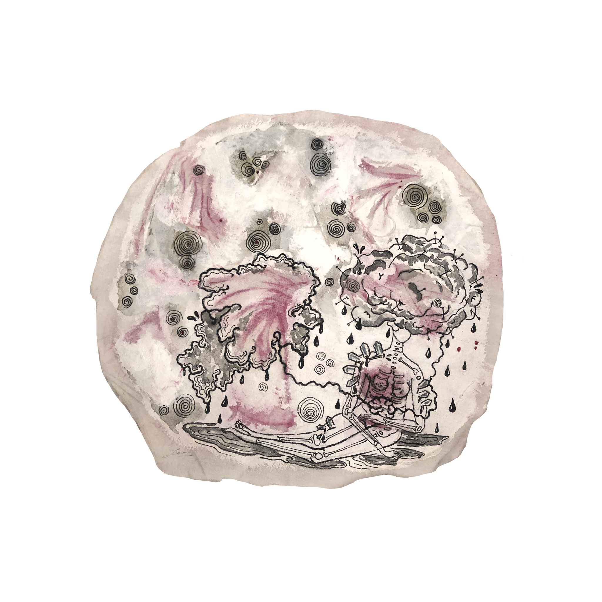 Growling Stomach, Thundering Brain, watercolor and pen on paper, 15.5cm x 14.5cm, 2021